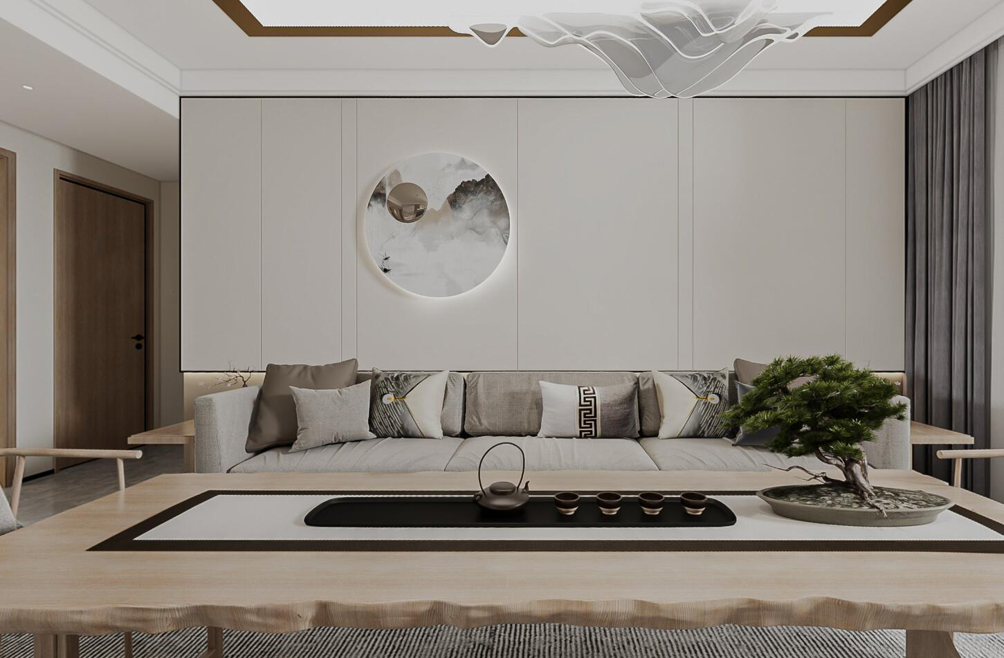 簡約新中式布置,原木與中式相結合的空間設計!