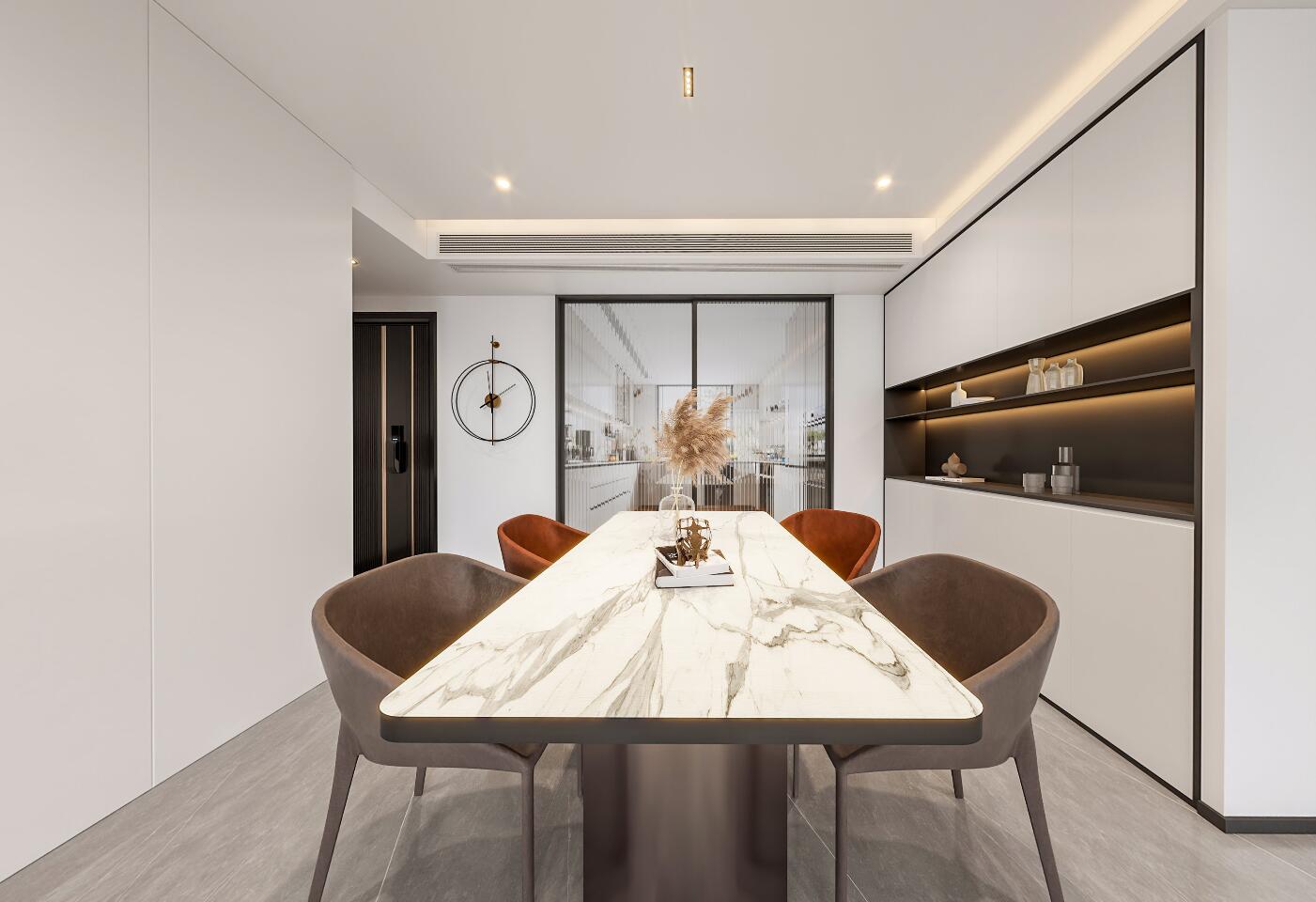精致的現代風,超多的定制柜子增加空間的收納面積。