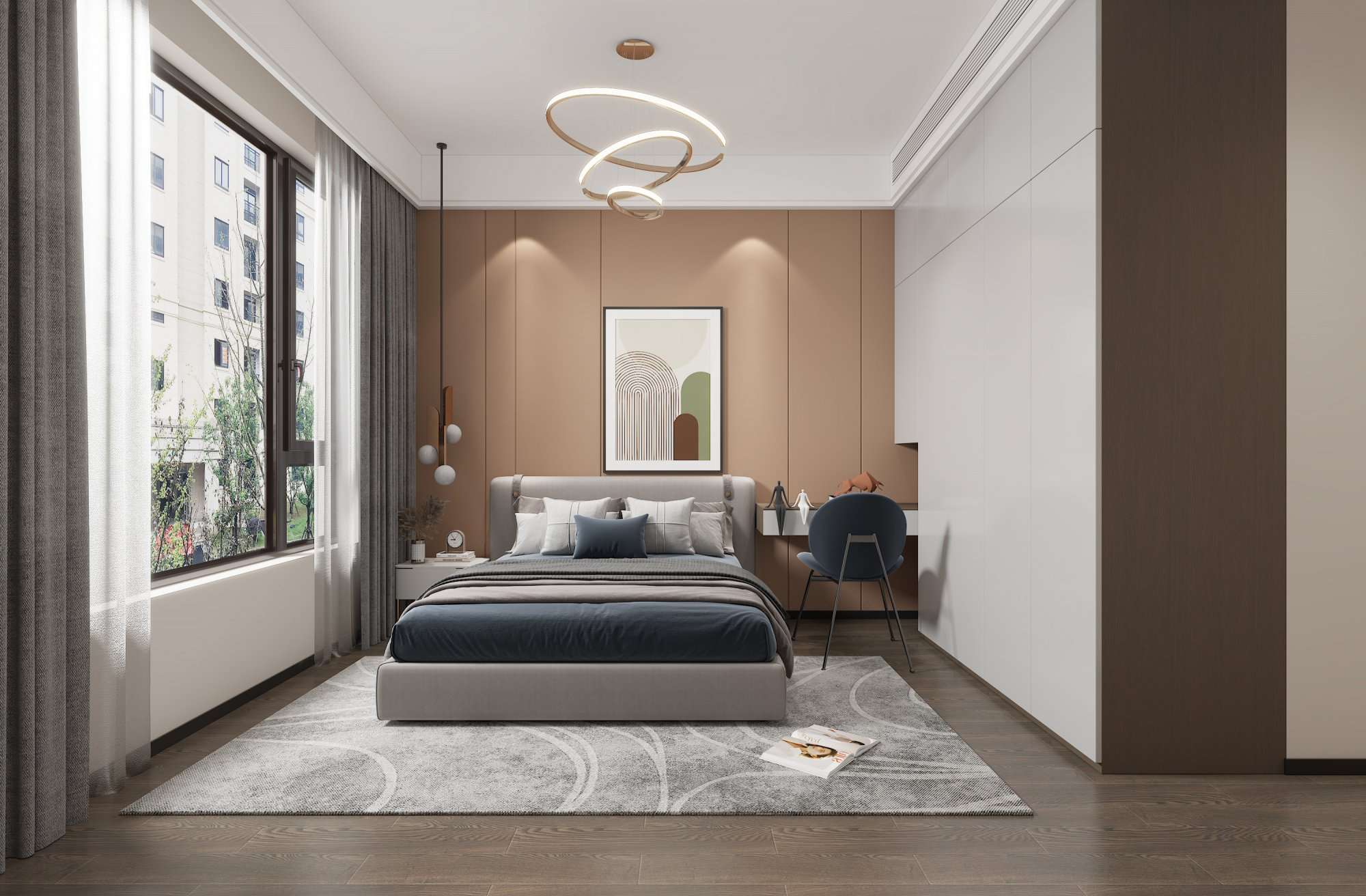 現(xiàn)代簡約風,定制的柜子增加空間的收納!