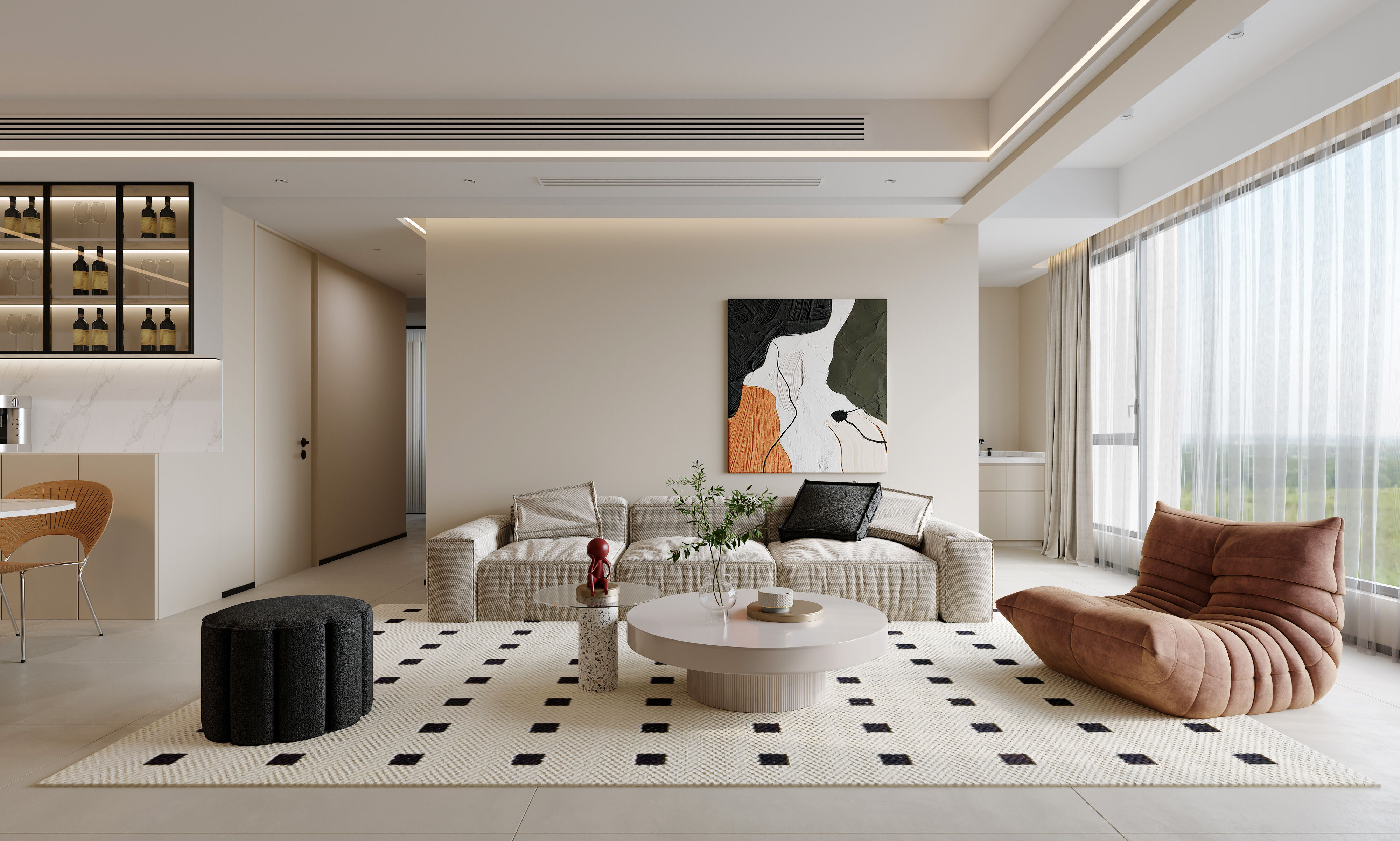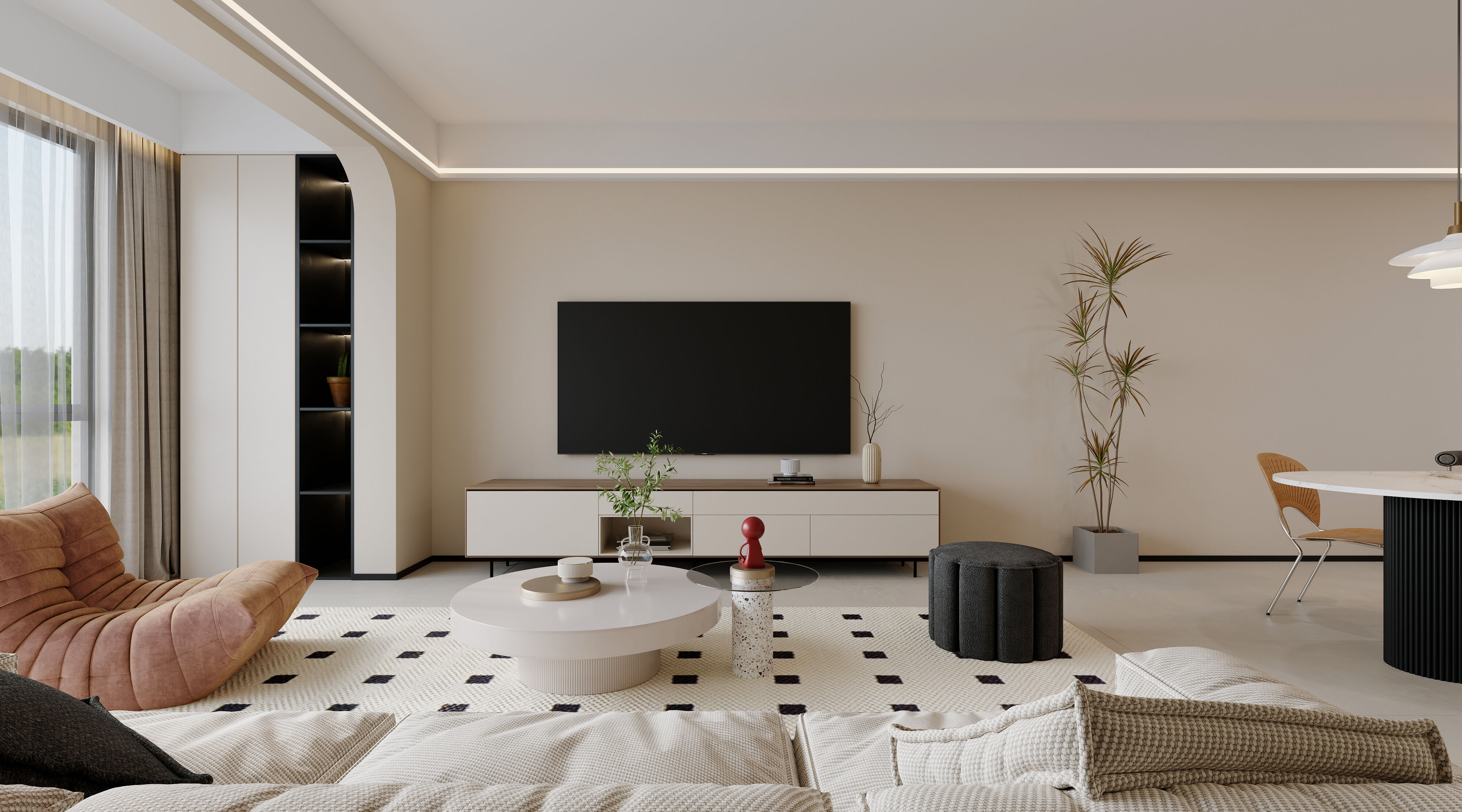 黑白灰配色+無主燈設計,打造靜謐舒適三居