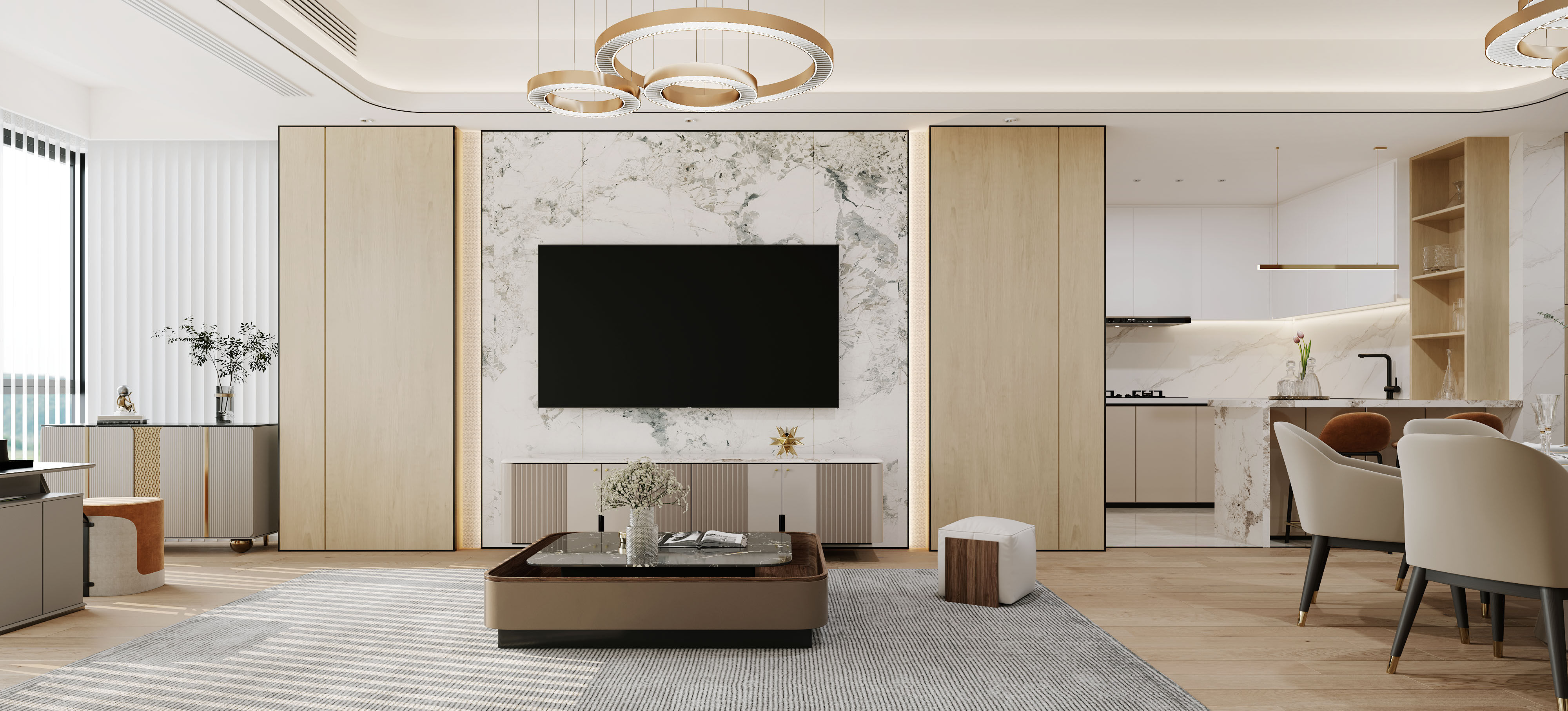 開放式布局,打造開闊奢華簡約輕奢風