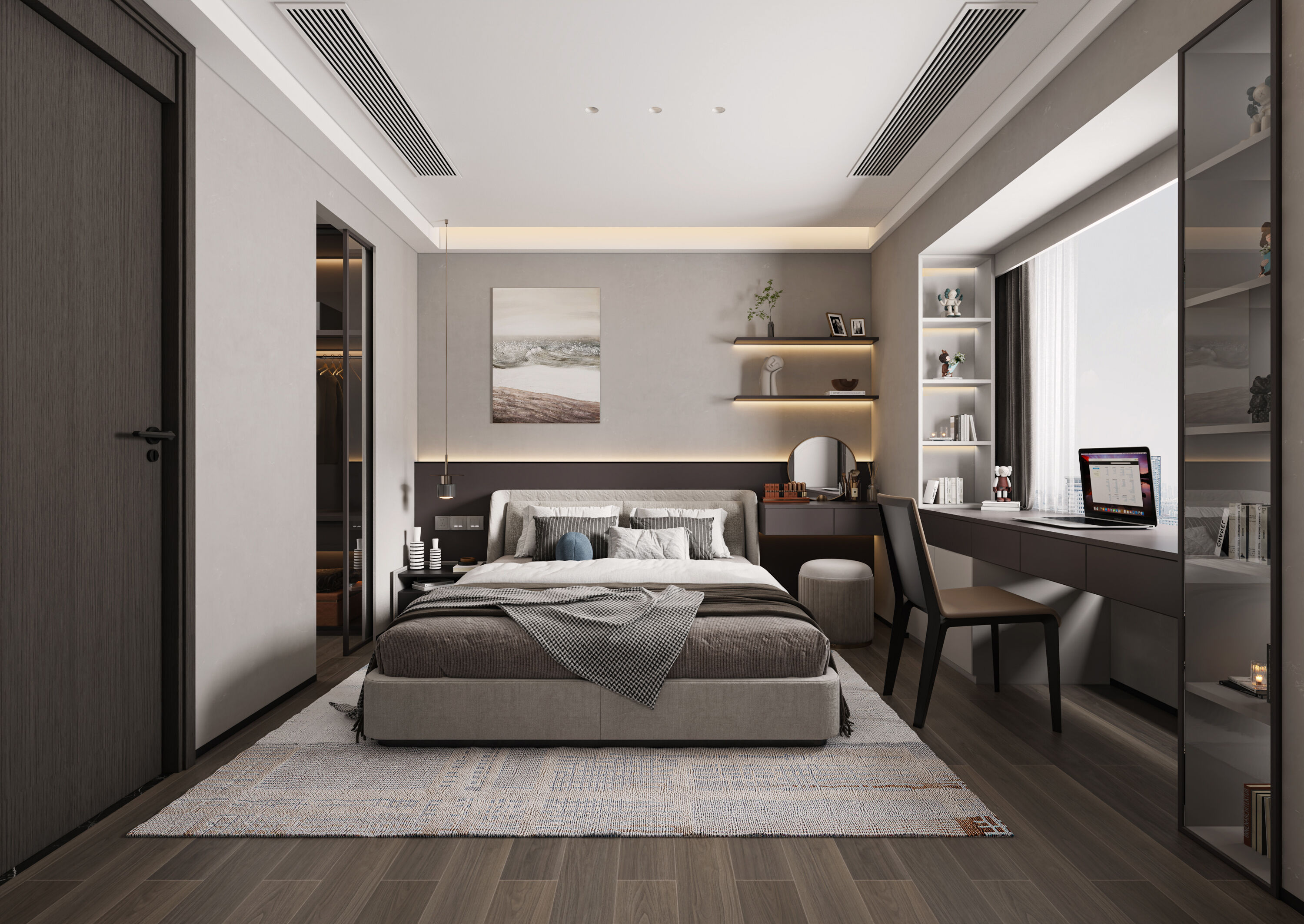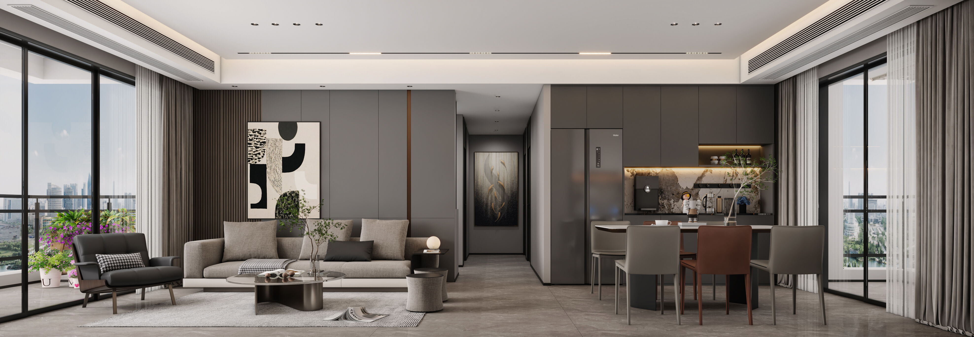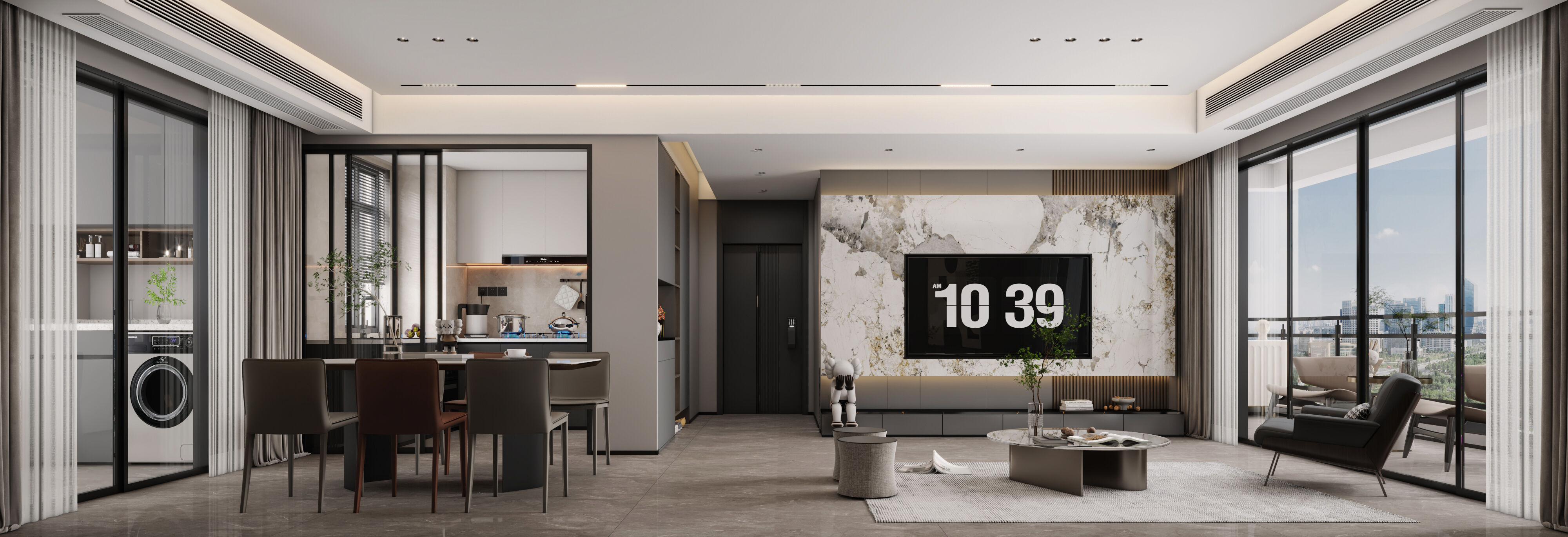 大橫廳布局+暗黑系配色,打造沉穩大氣簡約宜居風